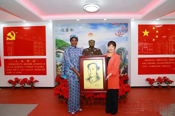 尼玛主席一行认真参观了毛主席等老一辈无产阶级革命家历史文物展览,瞻仰了毛主席坐像。毛小青书记与尼玛主席一行就一带一路共建,帮扶救助困难妇女儿童等弱势群体、维护妇女儿童合法权益、增进妇女儿童民生福祉等慈善事业进行了亲切友好的座谈交流。
